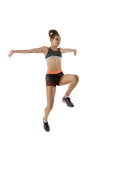Biała zawodowa biegaczka, trening sportowców odizolowana na białym tle studia. Copyspace na reklamę.