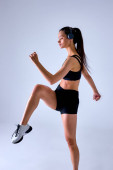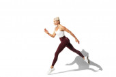 Biała zawodowa biegaczka, trening sportowców odizolowana na białym tle studia. Copyspace na reklamę.