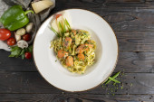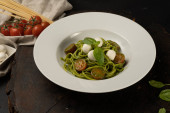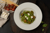 Zdjęcie "Lasagne z mielonej wołowiny lub mielonej wieprzowiny i sera, ozdobione liści bazylii i ziół. Gorące danie główne makaronu, mięsa, sera i ziół w ceramicznej misce na drewnianym stole kuchennym." może być wykorzystywane do celów osobistych i komercyjnych zgodnie z warunkami zakupionej licencji Royalty-free. Obraz jest dostępny do pobrania w jakości wysokiej rozdzielczości do 5760x3840.