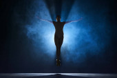 Zdjęcie "Sylwetka człowieka wskazując złe izolowane na ciemnym tle w świetle latarni" może być wykorzystywane do celów osobistych i komercyjnych zgodnie z warunkami zakupionej licencji Royalty-free. Obraz jest dostępny do pobrania w jakości wysokiej rozdzielczości do 5760x3840.