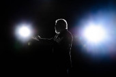 Sylwetka człowieka pozującego na ciemnym tle w świetle latarni