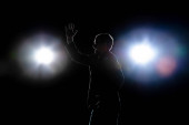 Sylwetka człowieka chroni się na ciemnym tle w świetle latarni