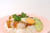 Shredded wieprzowe z ryż jaśminowy i zielony sałatka z papai