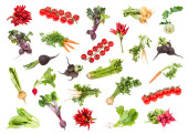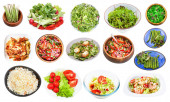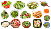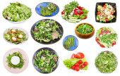 zbiór różnych świeżych sałatek z warzyw liściastych izolowanych na białym tle