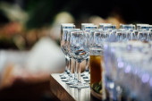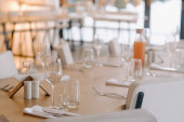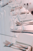 dekoracja stołu weselnego na stole w zamku, sztućce na stole.