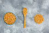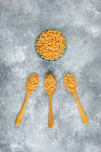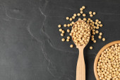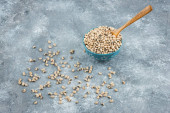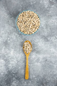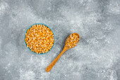 Miska białej fasoli nerkowej z łyżką na marmurowym tle