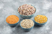 Zdjęcie "Różne surowe fasole, ziarna kukurydzy i czerwona soczewica na marmurowym tle" może być wykorzystywane do celów osobistych i komercyjnych zgodnie z warunkami zakupionej licencji Royalty-free. Obraz jest dostępny do pobrania w jakości wysokiej rozdzielczości do 5760x3840.