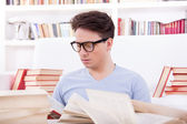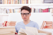 uomo appoggiato il letto di posaczłowiek, opierając się na pozowanie łóżko