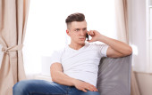 portret przystojny młodzieniec rozmowy na telefon komórkowy