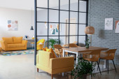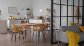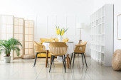 Zdjęcie "Stylowe wnętrze nowoczesnej jadalni" może być wykorzystywane do celów osobistych i komercyjnych zgodnie z warunkami zakupionej licencji Royalty-free. Obraz jest dostępny do pobrania w jakości wysokiej rozdzielczości do 5760x3840.