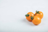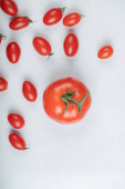Zamknij stos zdjęć pomidorów wiśniowych na białym tle