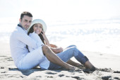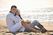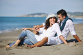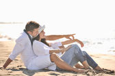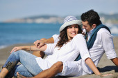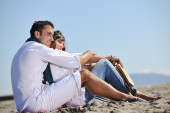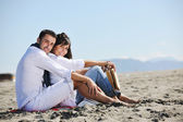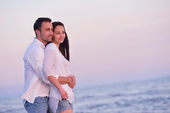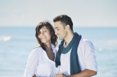 szczęśliwa młoda para baw się na pięknej plaży
