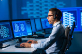 Zdjęcie "Zespół maklerów pracuje w biurze przy użyciu stacji roboczych i technologii analitycznych. Miejsce pracy profesjonalnych handlowców. Globalne rynki finansowe, biznes, wymiana walut i koncepcje bankowe." może być wykorzystywane do celów osobistych i komercyjnych zgodnie z warunkami zakupionej licencji Royalty-free. Obraz jest dostępny do pobrania w jakości wysokiej rozdzielczości do 5760x3840.