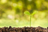 Rolnictwo i uprawy roślin sekwencji z porannym słońcem i ciemnozielonym tle rozmycia. Kiełkujące sadzonki wyrastają z nasion. Ekologia przyrody i koncepcja wzrostu z przestrzenią do kopiowania.