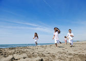 szczęśliwa młoda rodzina baw się dobrze na plaży