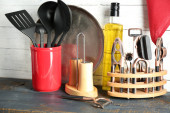 metalowe naczynia na stół szczegół
