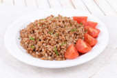 gotowanej kaszy gryczanej na tabliczce na stół szczegół