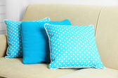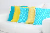 Biała kanapa z kolorowe poduszki w pokoju
