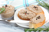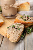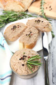 świeże pasztet z chlebem na drewnianym stole