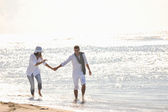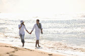 szczęśliwa młoda rodzina baw się dobrze na plaży
