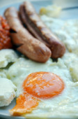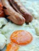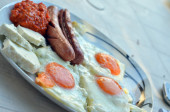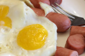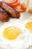 apetyczne śniadanie z jajka sadzone smażone jajka i smażone kiełbaski