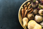 Kolorowy asortyment korzeniowy warzywo (marchew, burak, rzepa), rozmieszczony na czarny tło z kopiowy miejsce. Wszechstronny obraz dla wegańskie błonnik bogaty, zdrowa dieta z warzywami zimowymi.