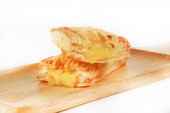 Zdjęcie "Zbliżenie domowej roboty krem waniliowy krem z kremem choux (ciasto śmietankowe), słodkie jedzenie piekarnicze z deską drewnianą na białym tle." może być wykorzystywane do celów osobistych i komercyjnych zgodnie z warunkami zakupionej licencji Royalty-free. Obraz jest dostępny do pobrania w jakości wysokiej rozdzielczości do 5760x3840.
