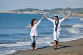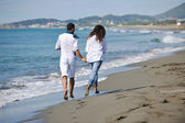 szczęśliwa młoda rodzina baw się dobrze na plaży