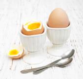 renkli ahşap zemin üzerine haşlanmış y