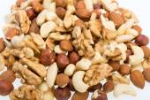 tło mieszanych orzechów - orzechy laskowe, orzechy włoskie, orzechy nerkowca, orzeszki piniowe