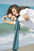 Zdjęcie "szczęśliwa młoda para baw się na pięknej plaży" może być wykorzystywane do celów osobistych i komercyjnych zgodnie z warunkami zakupionej licencji Royalty-free. Obraz jest dostępny do pobrania w jakości wysokiej rozdzielczości do 5760x3840.