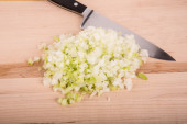 posiekaną zieloną cebulką na desce z bliska