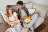 Młoda para oglądania telewizji w domu Poczernianie-out