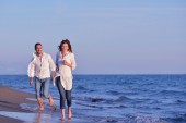 szczęśliwa młoda para baw się na pięknej plaży