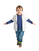 ładny blond dziecko na podłodze na tle
