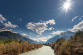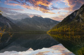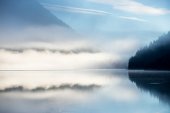 mistyczny nastrój austriackiego jeziora z chmury, gdzie promienie słoneczne prześwitywać