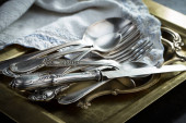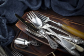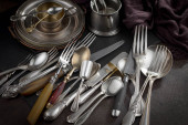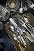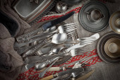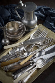 Srebrne naczynia na starym tle