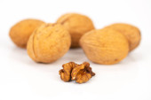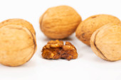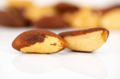 Brazil nut Bertholletia excelsa on a white background, isolated.
