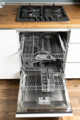 Zdjęcie "Otwarta zmywarka z czystymi talerzami. Nowoczesne urządzenie kuchenne." może być wykorzystywane do celów osobistych i komercyjnych zgodnie z warunkami zakupionej licencji Royalty-free. Obraz jest dostępny do pobrania w jakości wysokiej rozdzielczości do 5760x3840.