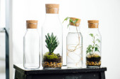 Pięć wytrzymałych roślin doniczkowych na tacy na parapecie. Kaktusy itp.