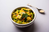 Zdjęcie "Styl indyjski Chawli Aloo subji lub sabzi, długie fasolki i ziemniaki suche frytki, podawane w misce, selektywne skupienie" może być wykorzystywane do celów osobistych i komercyjnych zgodnie z warunkami zakupionej licencji Royalty-free. Obraz jest dostępny do pobrania w jakości wysokiej rozdzielczości do 5760x3840.
