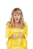 emocjonalne zaskoczony Ruda kobieta na białym tle na biały backgrou