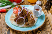 Zdjęcie "Kebab z wieprzowiny, zbliżenie" może być wykorzystywane do celów osobistych i komercyjnych zgodnie z warunkami zakupionej licencji Royalty-free. Obraz jest dostępny do pobrania w jakości wysokiej rozdzielczości do 5760x3840.