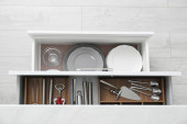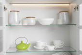Zdjęcie "Szafka z naczyniami i szkłem. Zamówienie w kuchni" może być wykorzystywane do celów osobistych i komercyjnych zgodnie z warunkami zakupionej licencji Royalty-free. Obraz jest dostępny do pobrania w jakości wysokiej rozdzielczości do 5760x3840.