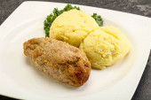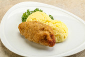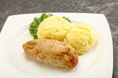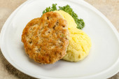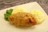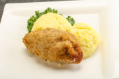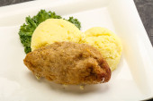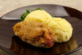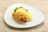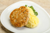 Chrupiący kotlet z kurczaka z mięsa mielonego z puree ziemniaczanym