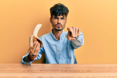 Zdjęcie "Młody Hiszpan ubrany w luźne ubrania, siedzący na stole, świętujący sukces z podniesionymi ramionami i zamkniętymi oczami. " może być wykorzystywane do celów osobistych i komercyjnych zgodnie z warunkami zakupionej licencji Royalty-free. Obraz jest dostępny do pobrania w jakości wysokiej rozdzielczości do 5760x3840.
