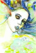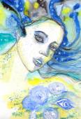 ilustrowany portret pięknej dziewczyny