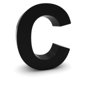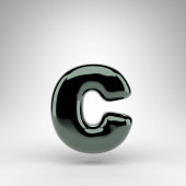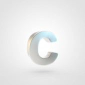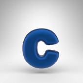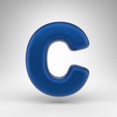 Litera C na białym tle. Niebieski chrom 3D renderowane czcionki z błyszczącej powierzchni.