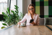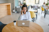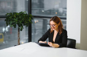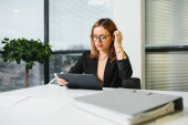 Portret odnoszącej sukcesy kobiety zasiadającej na stanowisku