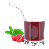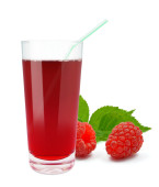 nektar malinowy lub sok w przezroczystej szklance. Izolacja na białym tle